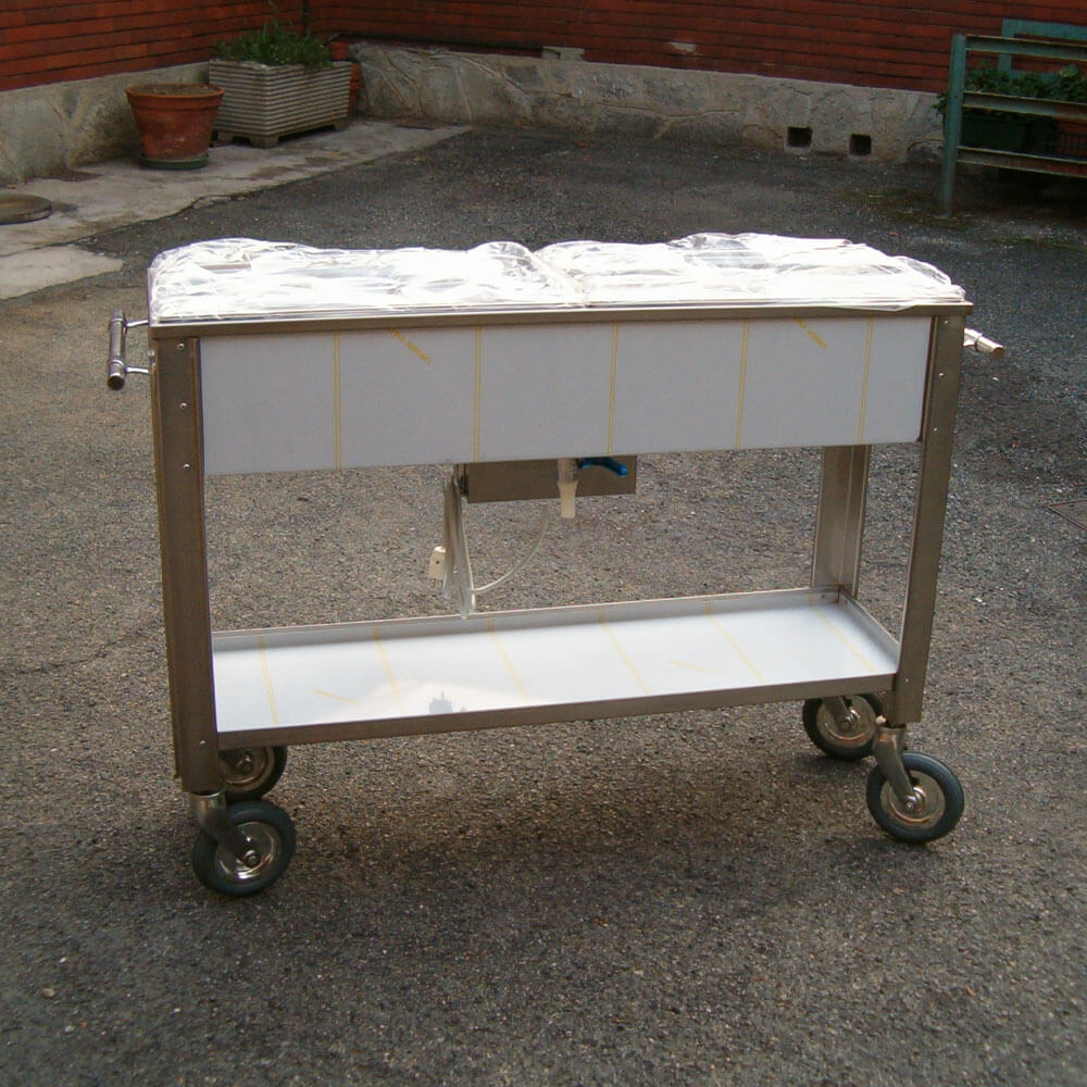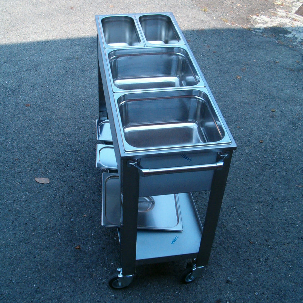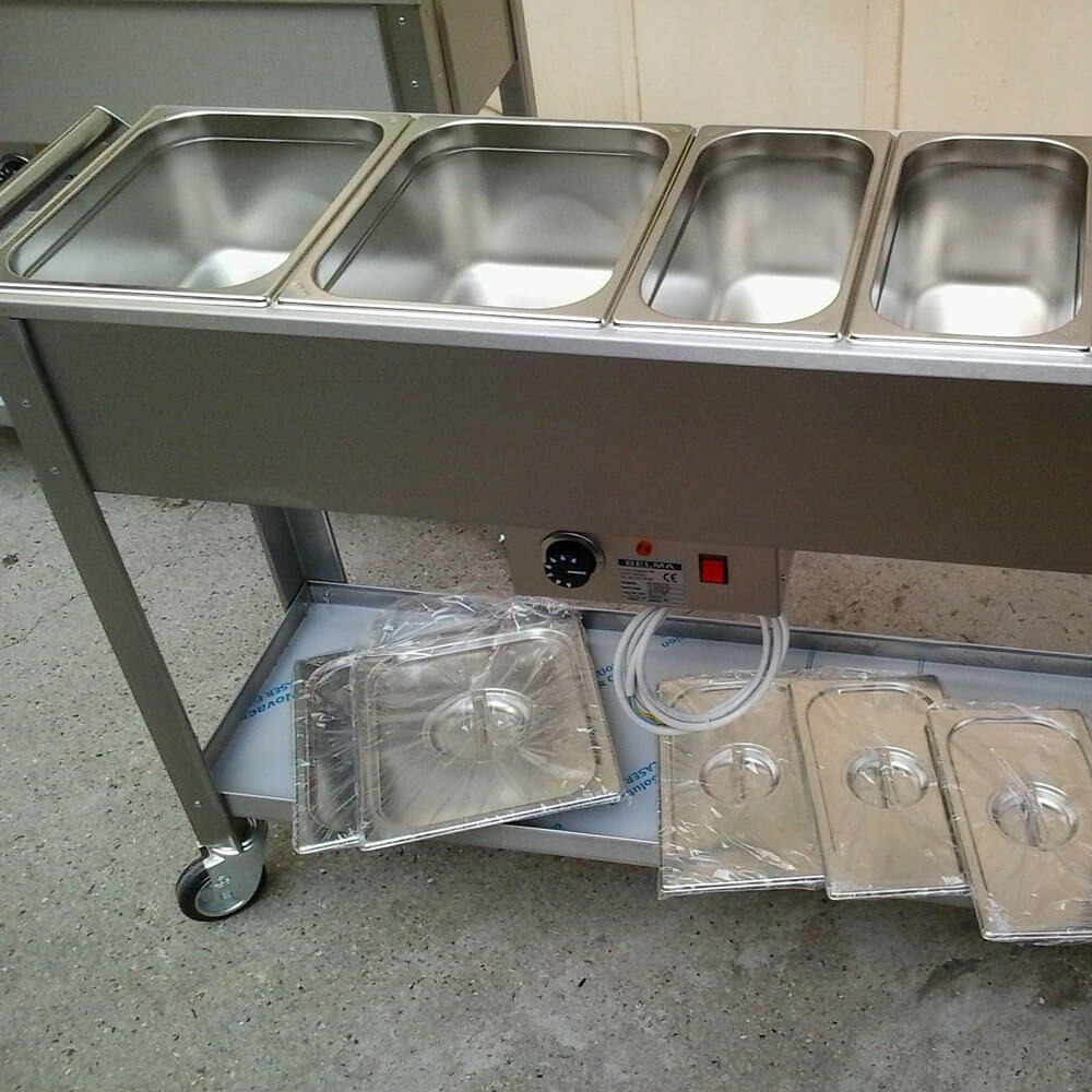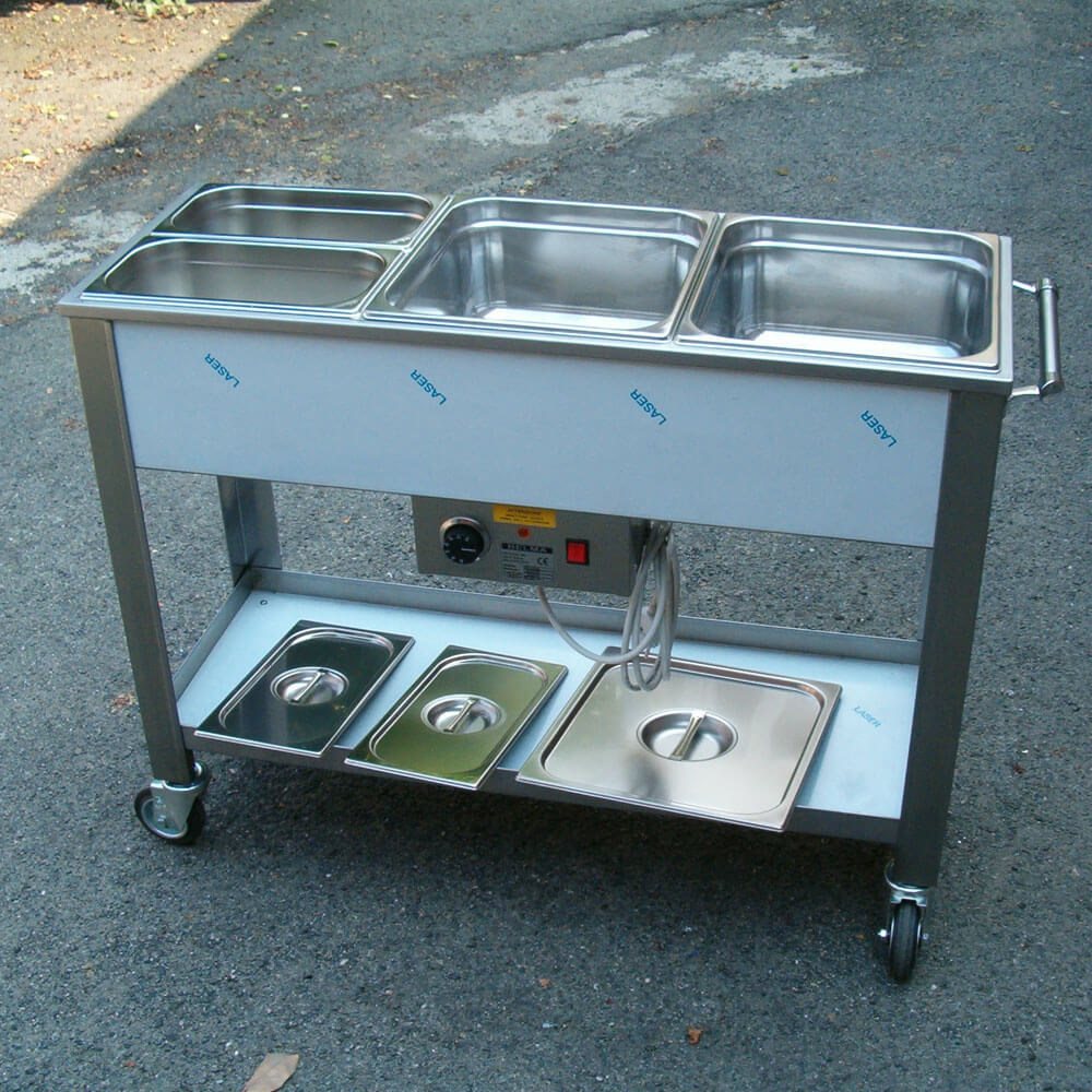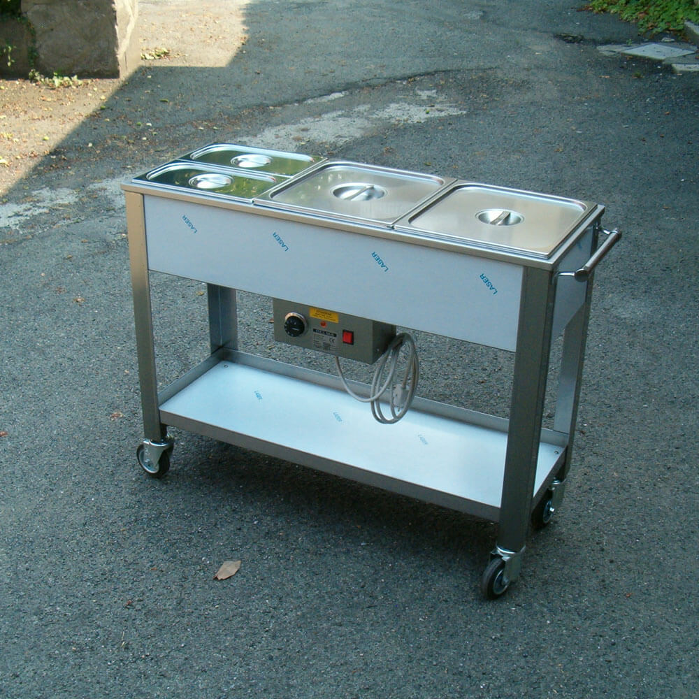 - Carrelli termici scaldavivande a bagnomaria costruiti in acciaio inox satinato AISI 304, dotati di vaschette Gastronorm di formato a richiesta.