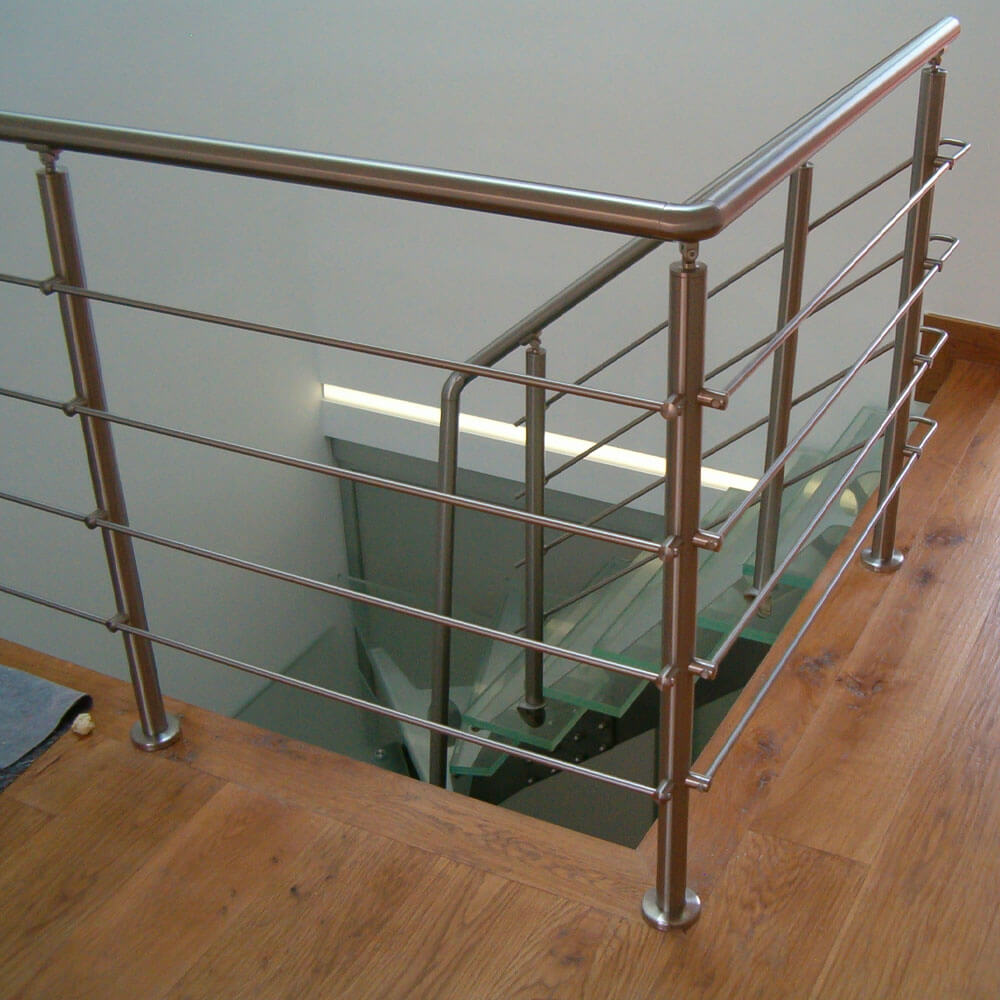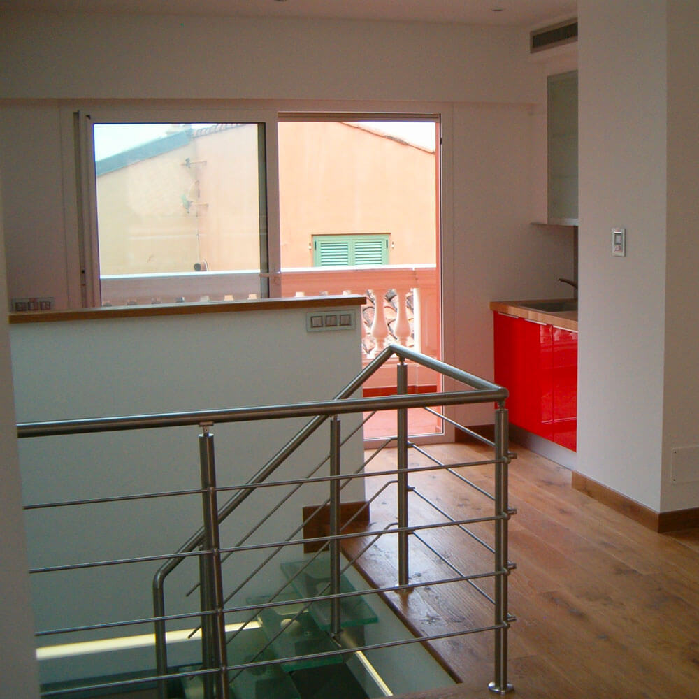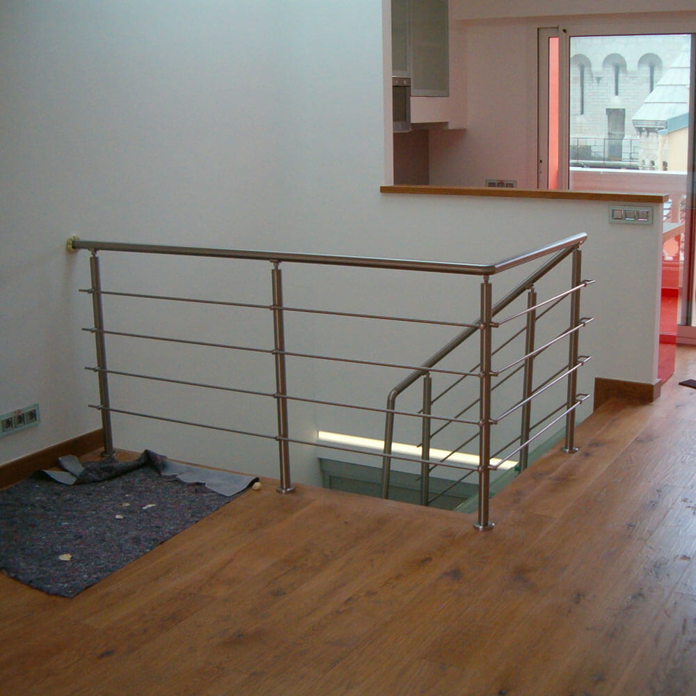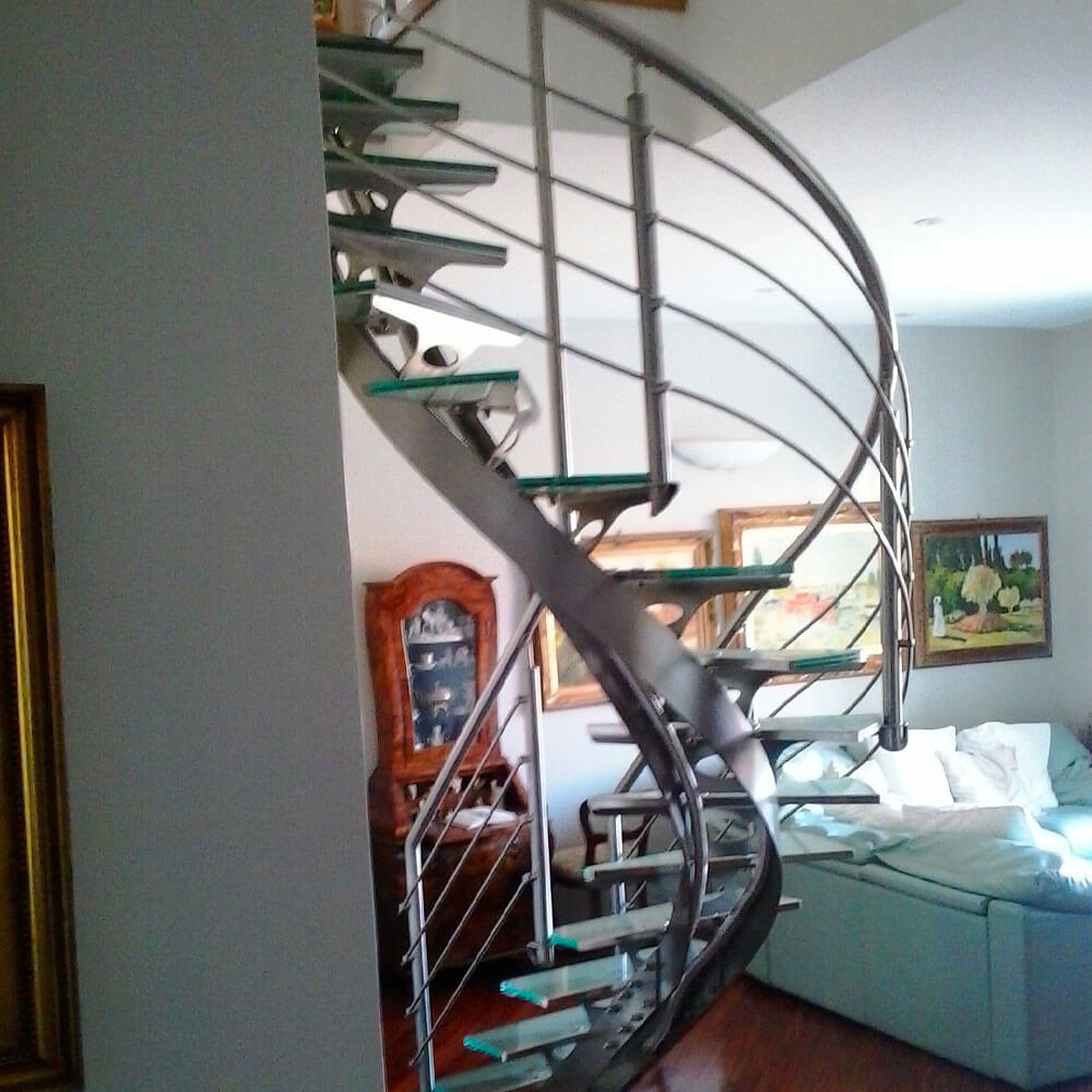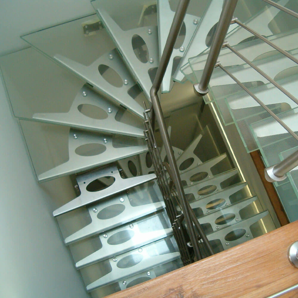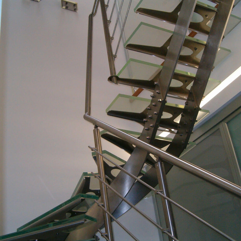 Per un alloggio di prestigio abbiamo realizzato una scala in acciaio inox e cristallo temperato stratificato antiscivolo.