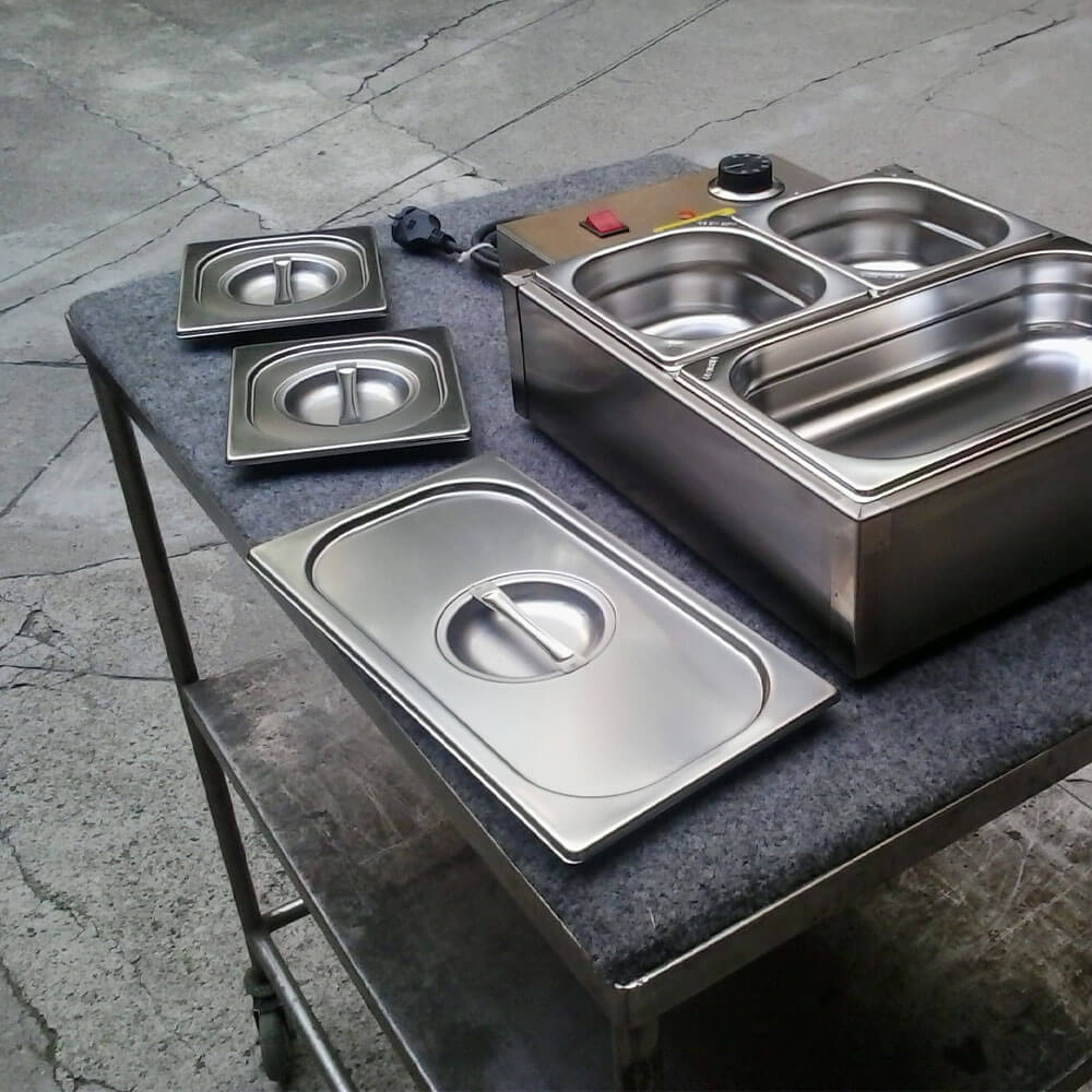 Tavole calde interamente in acciaio inox AISI 304, con vaschette removibili.